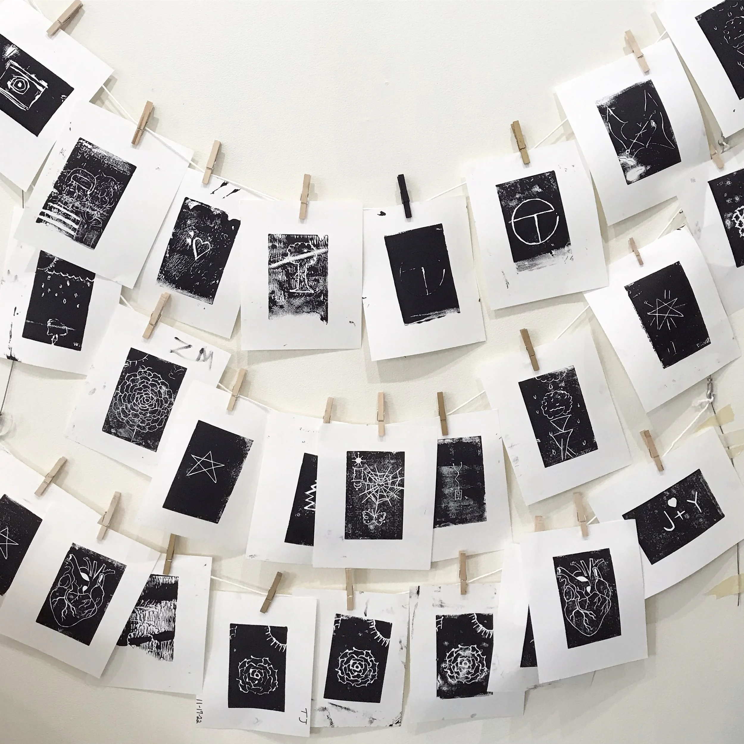 We partnered with Embarc Chicago to bring Chicago Public School students to Awakenings to explore what healing means to them through print. Students were asked to think of an object, person, place, or activity that represents something healing in their lives and translate that into an image. Afterwards we had discussions on how the students’ perspectives on healing were shifted compared to the beginning of the workshop.