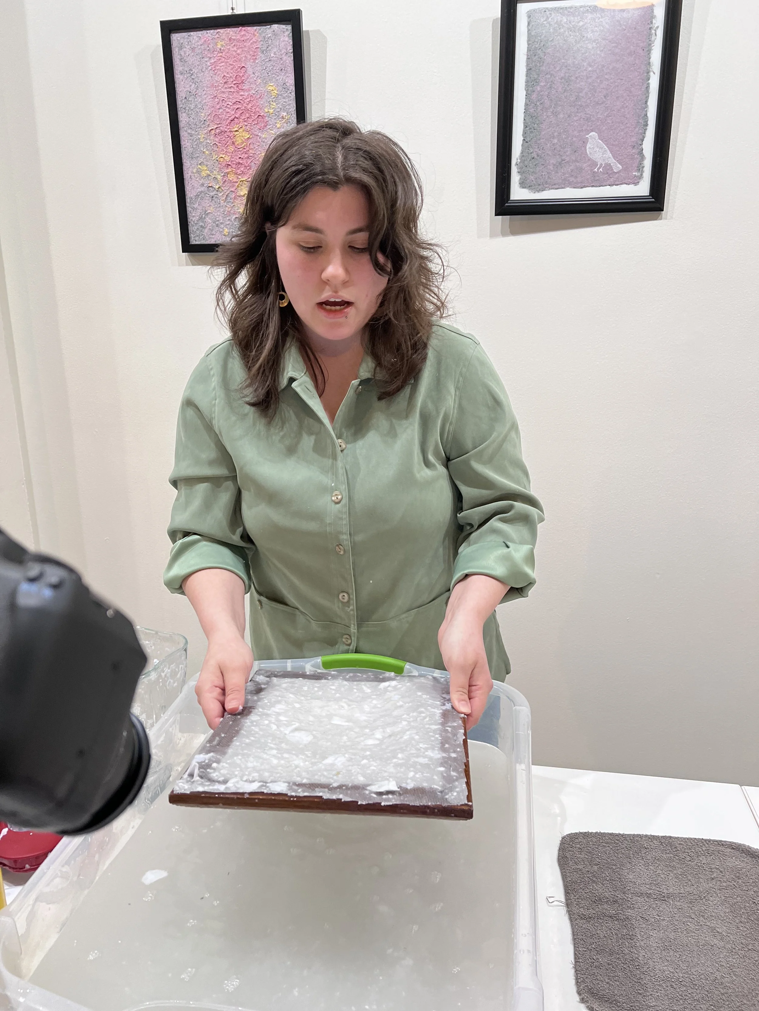 Participants used objects and supplies found around their home, like a blender and old mail to create paper ready for art making. The intention of the workshop was to explore healing through a creative tactile experience and provide alternative paper making methods accessible from home.